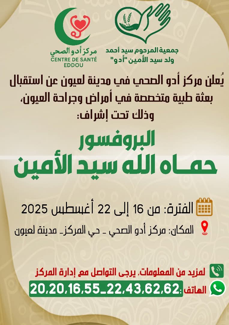 بعثة طبية مختصة بامراض وجراحة العيون تزور ولاية الحوض الغربي