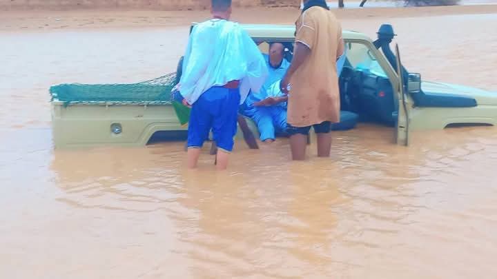 مياه الأمطار تحاصر سيارة أحد رؤساء مراكز الامتحانات بالحوض الشرقي