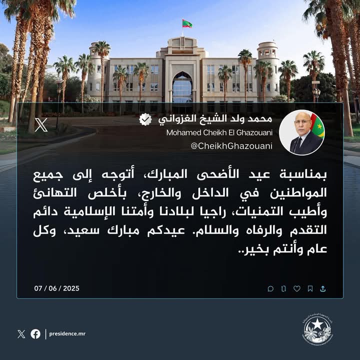 رئيس الجمهورية يهنئ الموريتانيين بعيد الأضحى من الأراضي المقدسة
