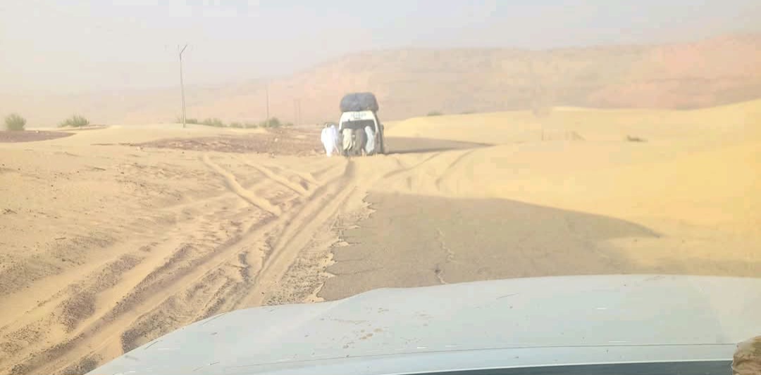 زحف الرمال يقطع طريق تكانت عند مقطع لعكيلة على محور لتفتار المجرية