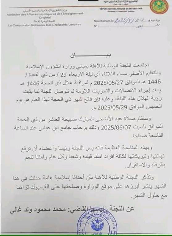 اللجنة الوطنية للأهلة تُعلن فاتح ذي الحجة وموعد صلاة عيد الأضحى