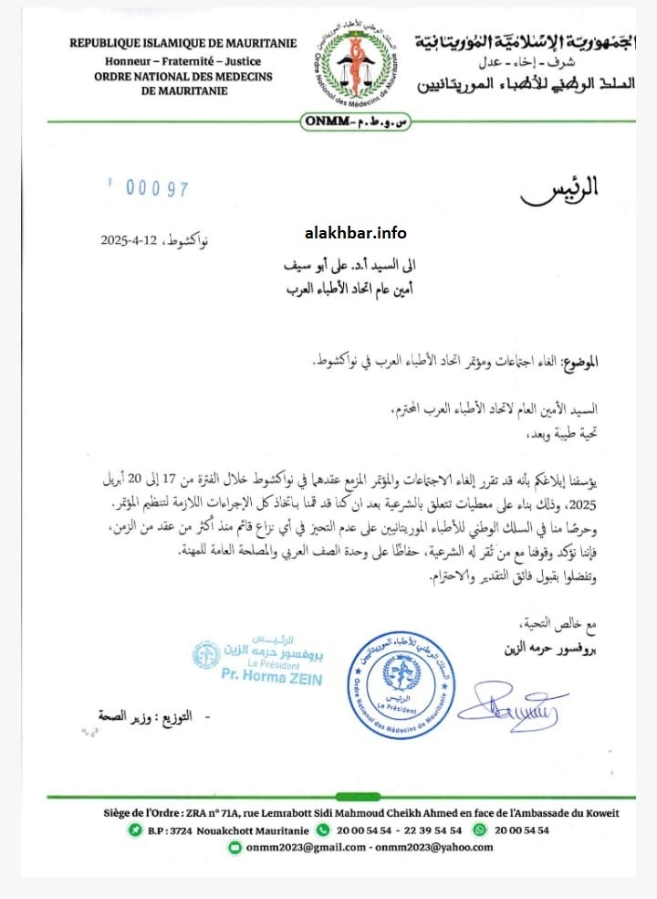 السلك الوطني للأطباء يعلن إلغاء مؤتمر اتحاد الأطباء العرب حفاظا على وحدة الصف المهني