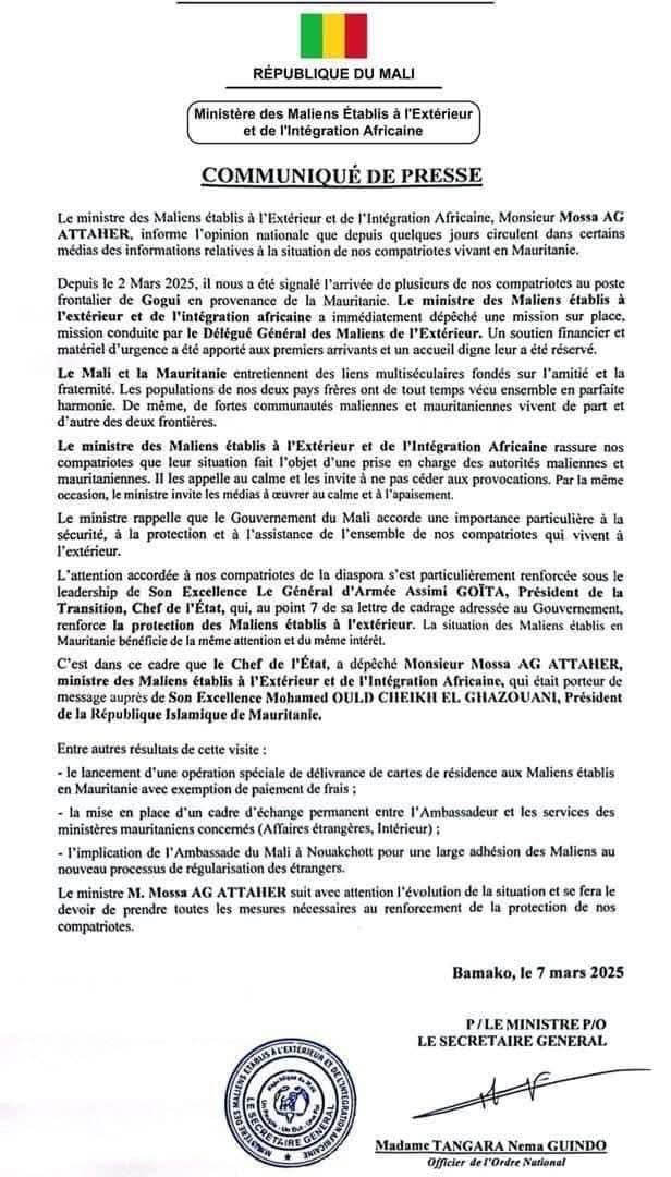 مالي وموريتانيا تتفقان على إجراءات جديدة لدعم الجالية المالية
