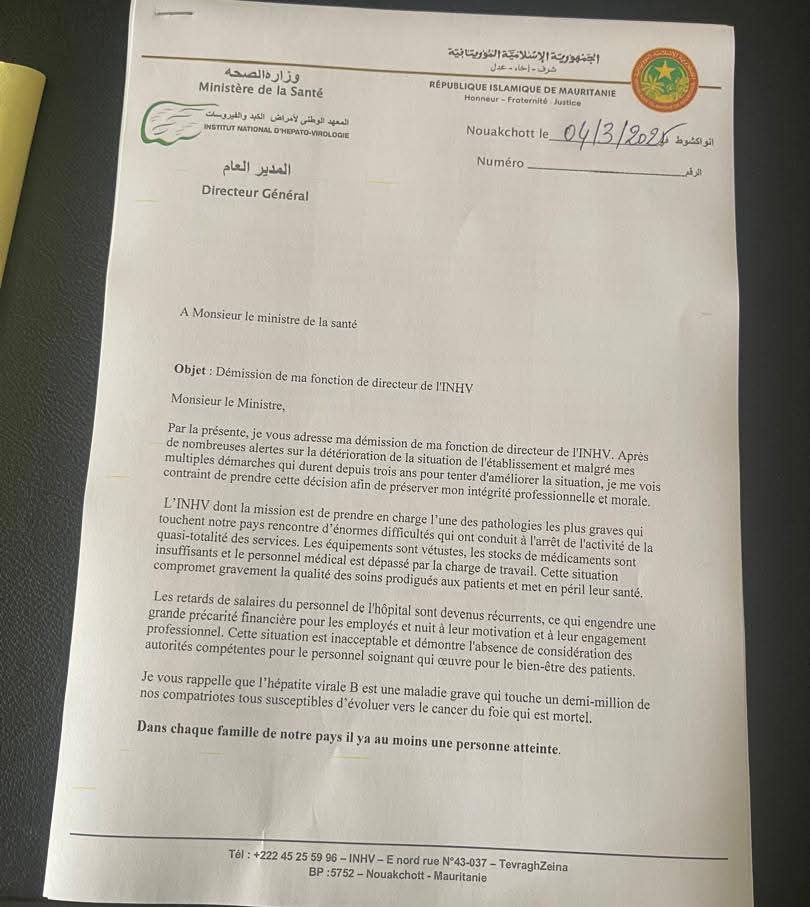 المدير العام للمعهد الوطني لأمراض الكبد والفيروسات يقدم استقالته