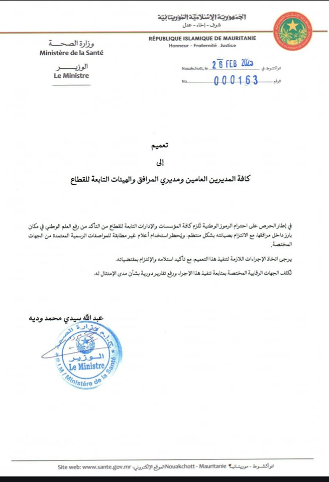 وزير الصحة يصدر تعميمًا بضرورة رفع وصيانة العلم الوطني في مرافق القطاع