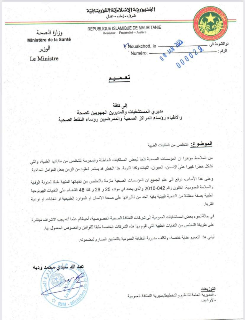 وزير الصحة يحذر من مخاطر النفايات الطبية ويدعو لالتزام المعايير البيئية