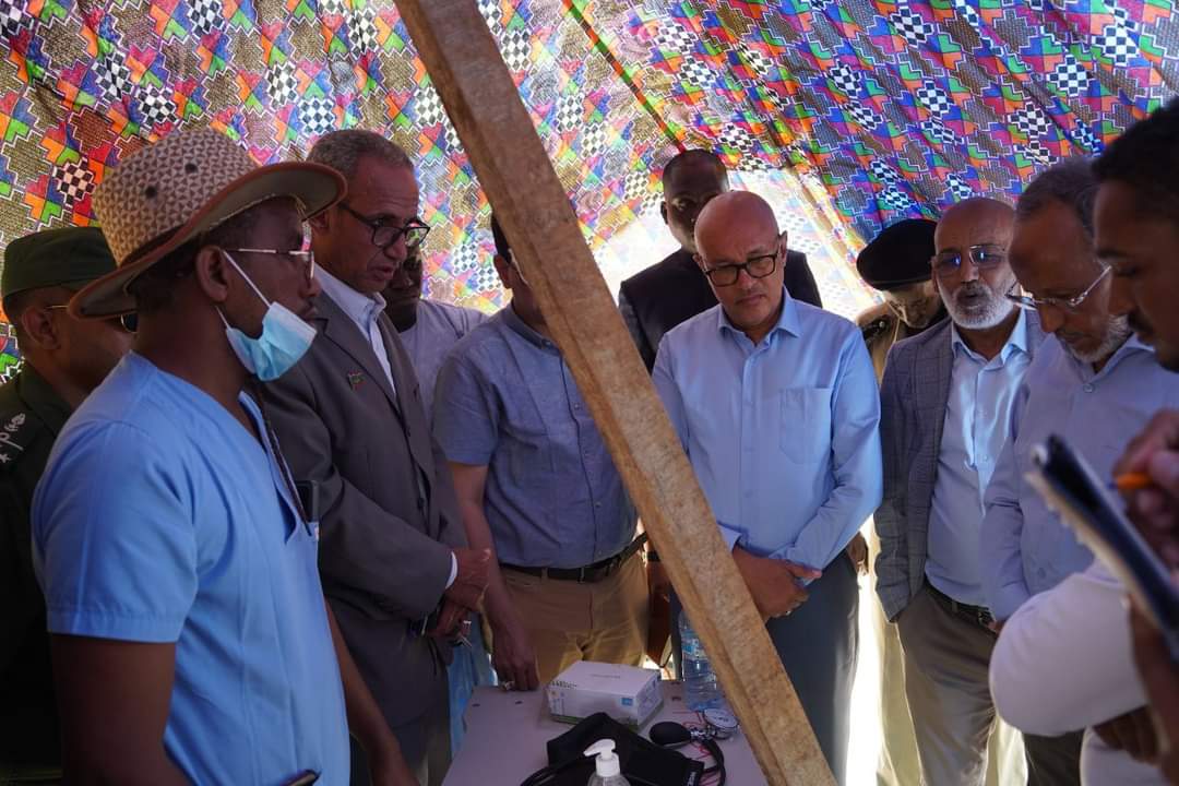 قام وزير الصحة، السيد عبد الله سيدي محمد وديه، ظهر اليوم، بزيارة لمركز الإيواء المؤقت للمتضررين من فيضانات النهر بومبو، وذلك برفقة والي ولاية كيديماغه، السيد أحمد محمد محمود الديه.