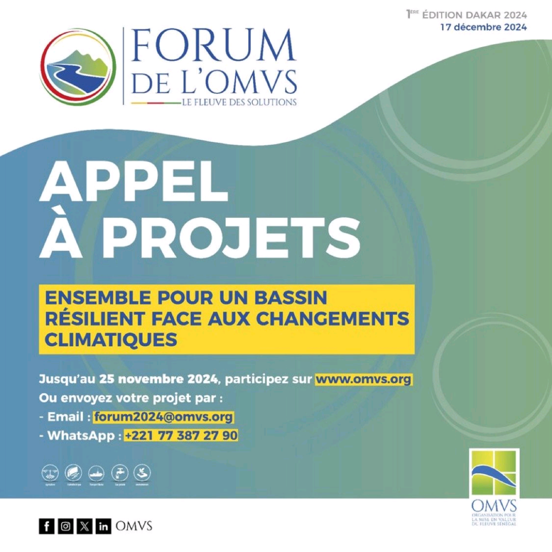 دعت منظمة استثمار نهر السنغال أصحاب المشاريع المبتكرة في مواجهة تداعيات التغيرات المناخية للمشاركة في مسابقة سيتم تكريم الفائزين فيها خلال الدورة الأولى لمنتدى المنظمة، المقرر عقده في 17 ديسمبر المقبل.