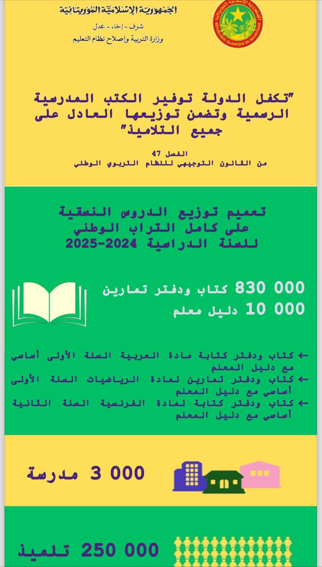 وتشمل هذه العملية توزيع 1,651,000 كتاب مجاني على الحلقة الأولى من التعليم الأساسي.
