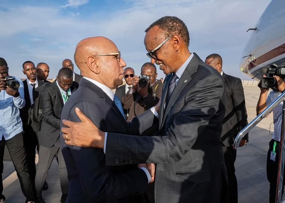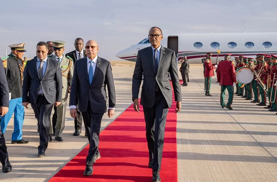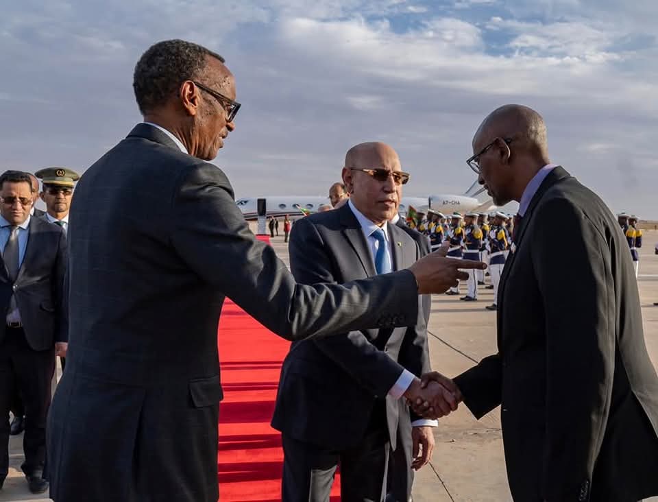 وكان في استقبال الرئيس كاغامي بمطار نواكشوط الدولي "أم التونسي" الرئيس الموريتاني محمد ولد الشيخ الغزواني.