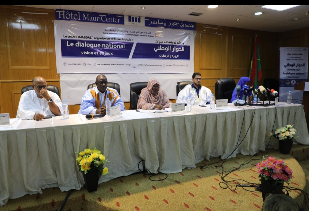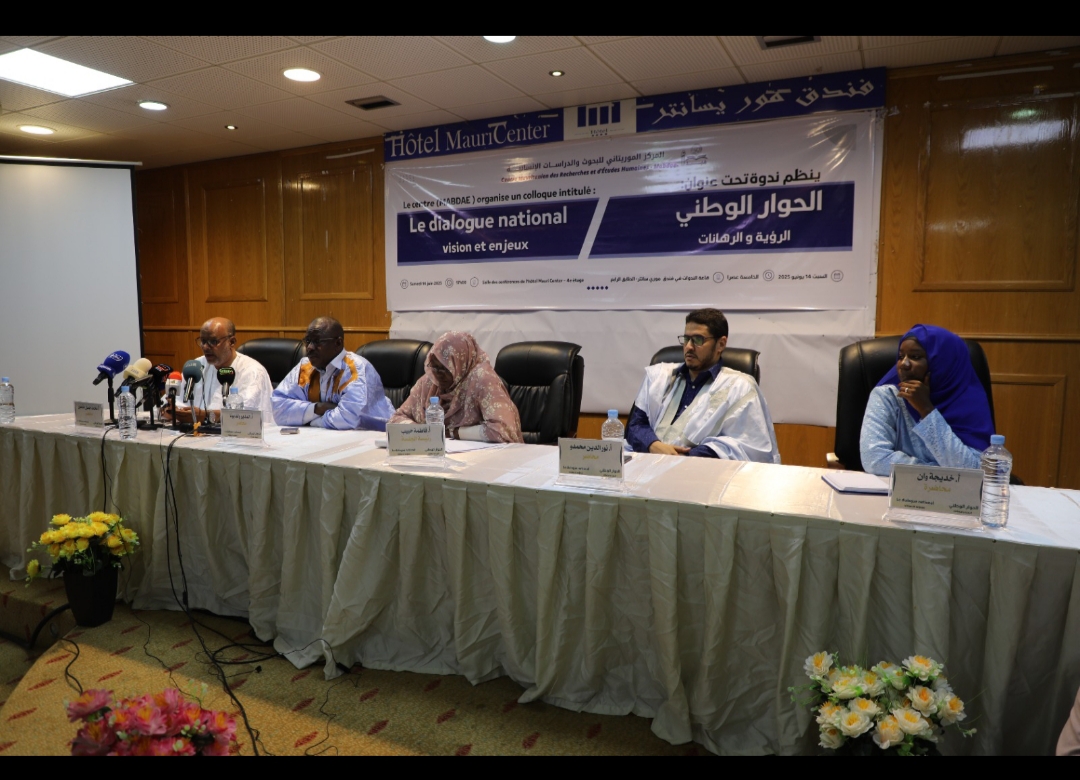 نظم المركز الموريتاني للبحوث والدراسات الإنسانية “مبدأ”، مساء اليوم السبت 14 يونيو 2025، في قاعة الندوات بفندق موري سانتر، ندوة علمية تحت شعار: "الحوار الوطني .. الرؤية والرهانات".