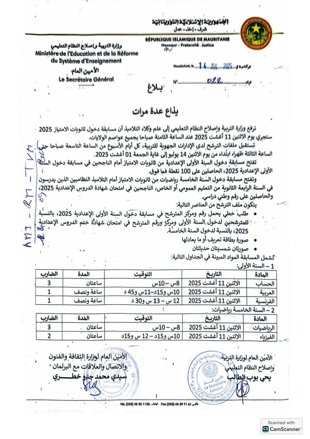 أعلنت وزارة التهذيب الوطني أن امتحان دخول ثانويات الامتياز لسنة 2025 سيُجرى يوم الاثنين 11 أغسطس عند الساعة الثامنة صباحا، وذلك على مستوى جميع عواصم الولايات.