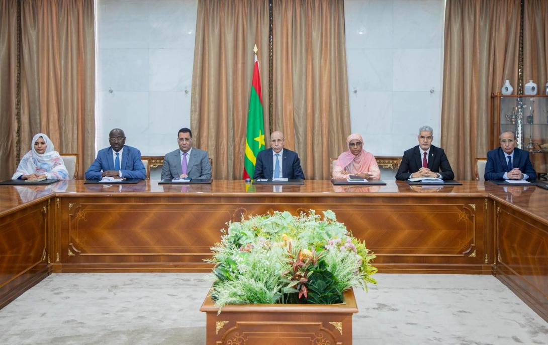 عقد رئيس الجمهورية، السيد محمد ولد الشيخ الغزواني، اليوم الجمعة، اجتماعًا بالقصر الرئاسي مع أعضاء إدارة حملة مرشح موريتانيا الفائز برئاسة مجموعة البنك الإفريقي للتنمية، السيد سيدي ولد التاه.