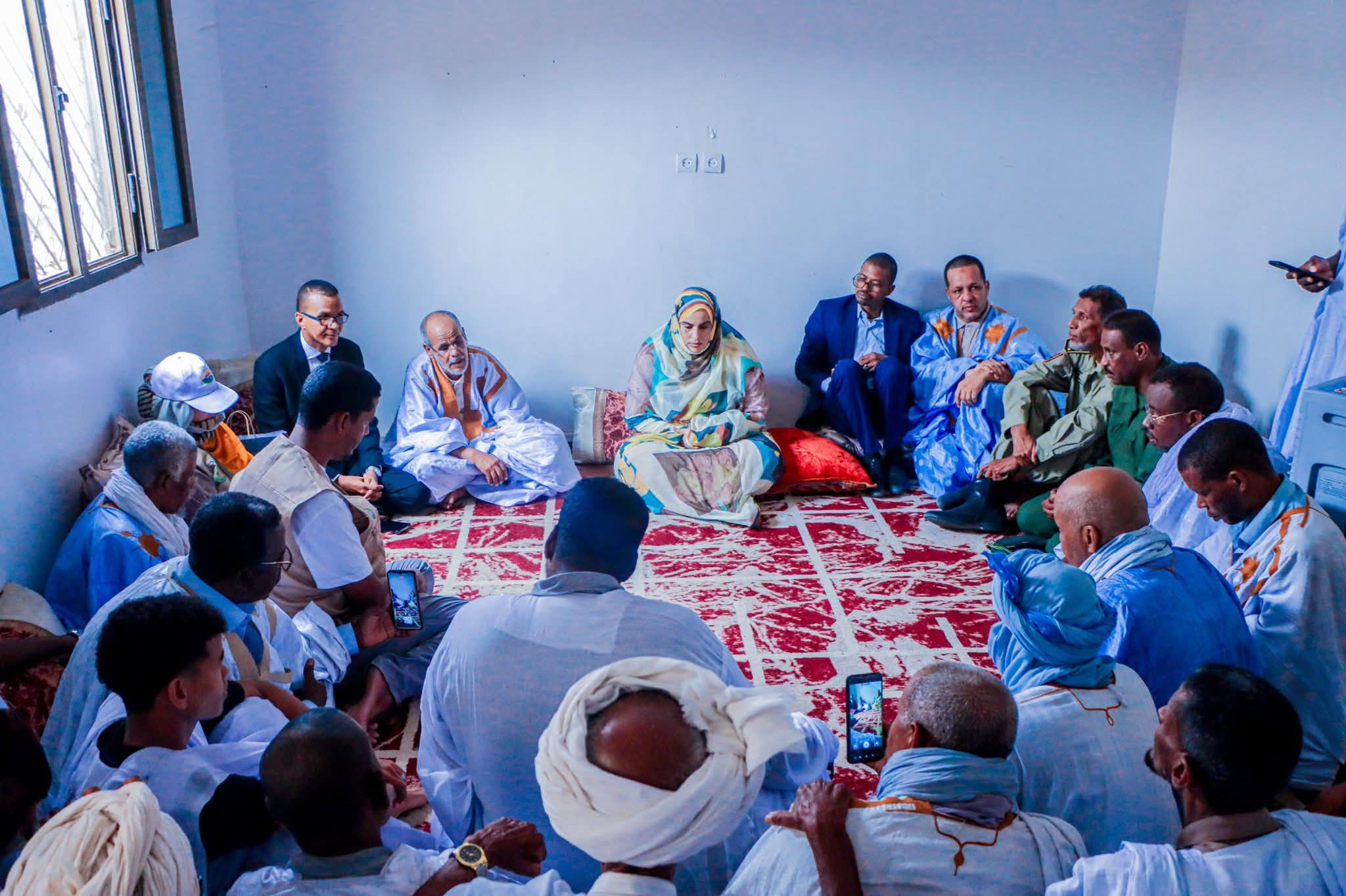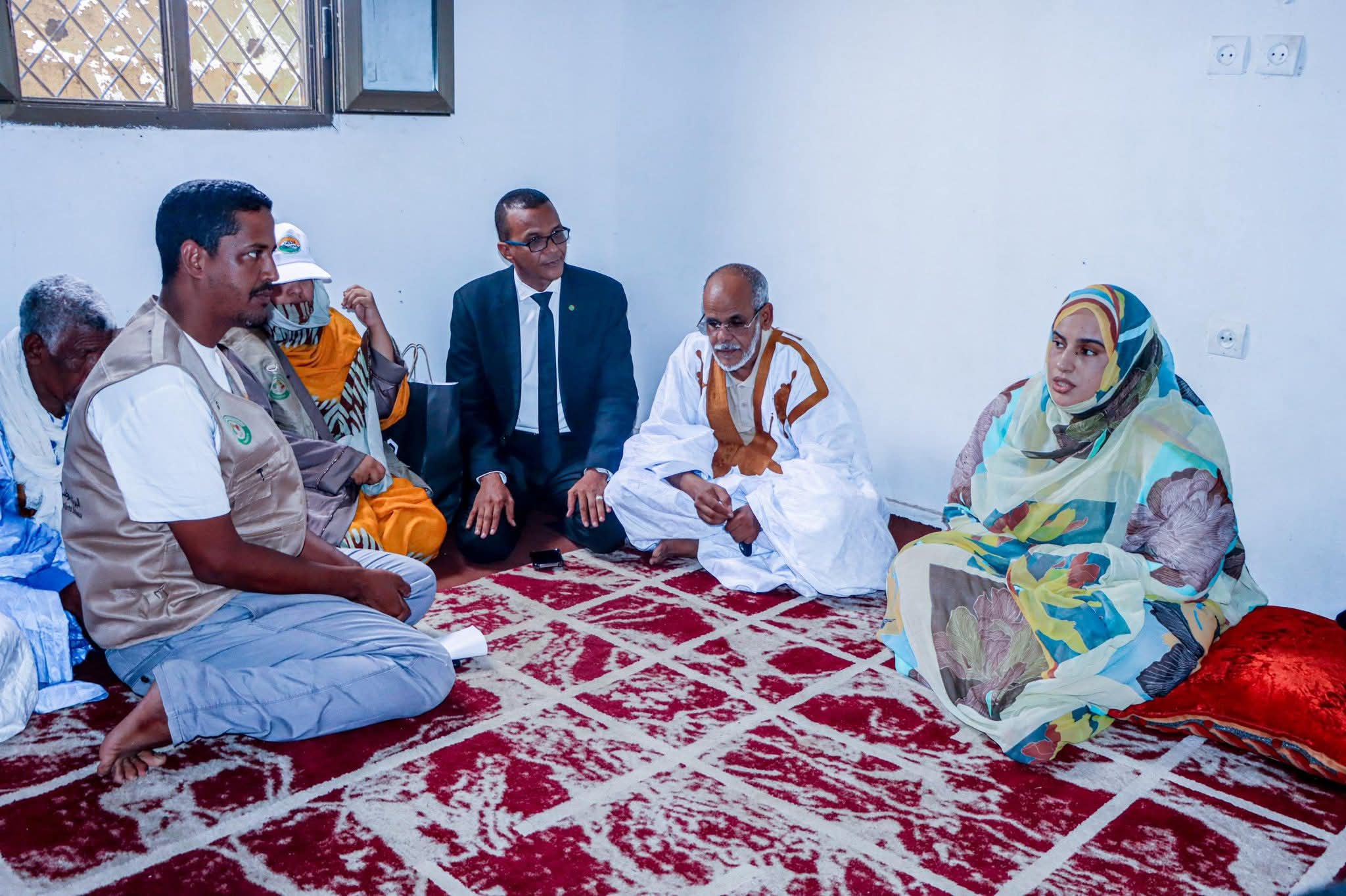 وضم الوفد كلاً من مستشار الرئيس السيد أحمد ولد النيني، ووالي نواكشوط الشمالية السيدة أطفيلة بنت محمدن، وحاكم مقاطعة توجنين السيد آدما اردو حسين جا، إلى جانب وفد من المندوبية العامة للتضامن الوطني ومكافحة الإقصاء "التآزر".