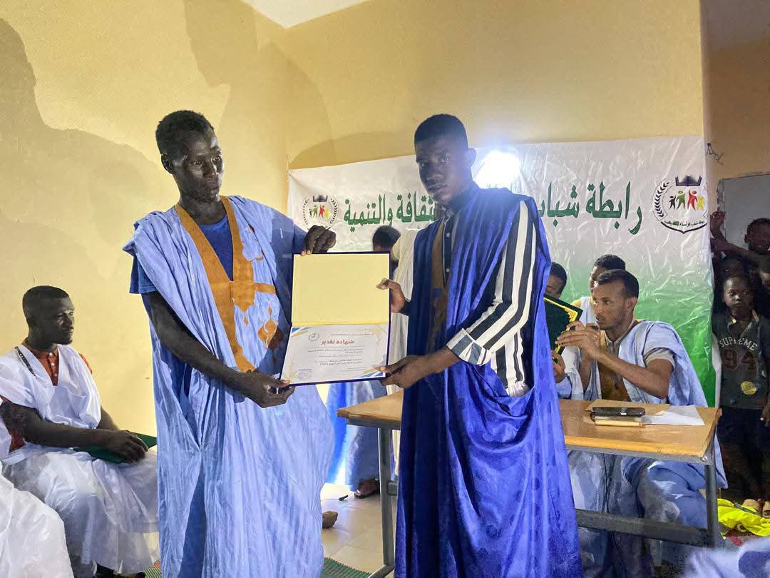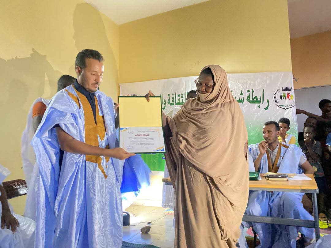 وحضر الأمسية الختامية الدكتور لحبوس ولد الطاهر، رئيس المركز الصحي في انبيكة عاصمة البلدية، حيث تم تكريم المتفوقين في المسابقات الوطنية، وتوزيع الجوائز على الفائزين في مختلف الأنشطة، إلى جانب تتويج الفريق الفائز بكأس الرابطة.