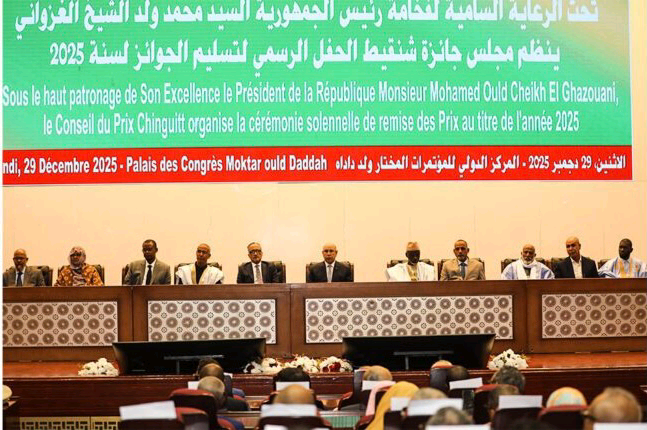 أشرف رئيس الجمهورية السيد محمد ولد الشيخ الغزواني، اليوم، على حفل تسليم جوائز شنقيط لسنة 2025، التي تُعد أرفع الجوائز الوطنية في مجالات الفكر والبحث والإبداع.