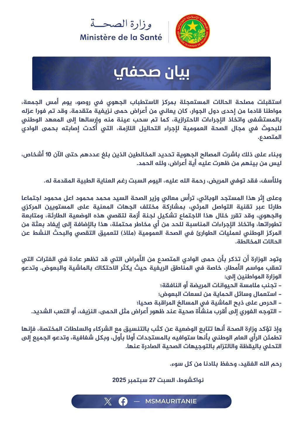 وفاة أول حالة حمى الوادي المتصدع في روصو والصحة تشكل لجنة أزمة