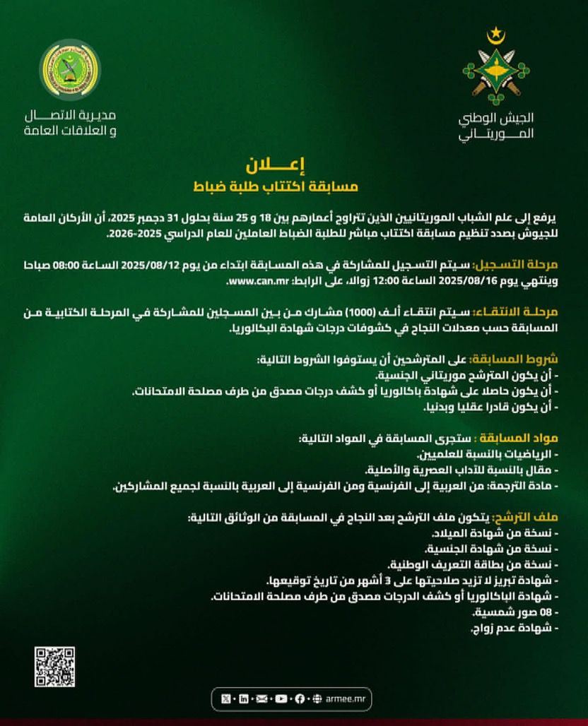 الجيش الوطني يطلق مسابقة لاكتتاب الضباط العاملين