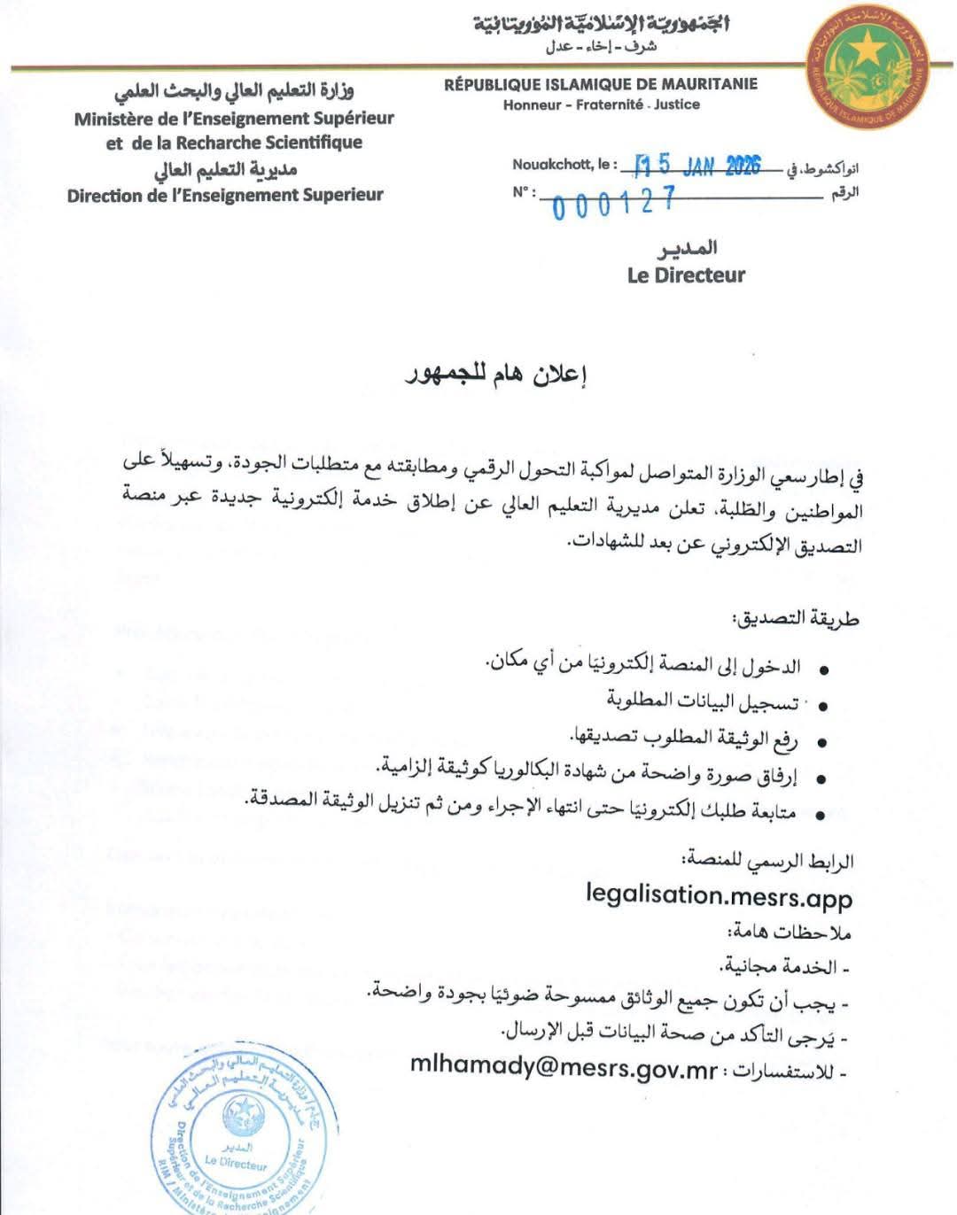 وزارة التعليم العالي والبحث العلمي تطلق خدمة رقمية جديدة لتصديق الشهادات عن بعد