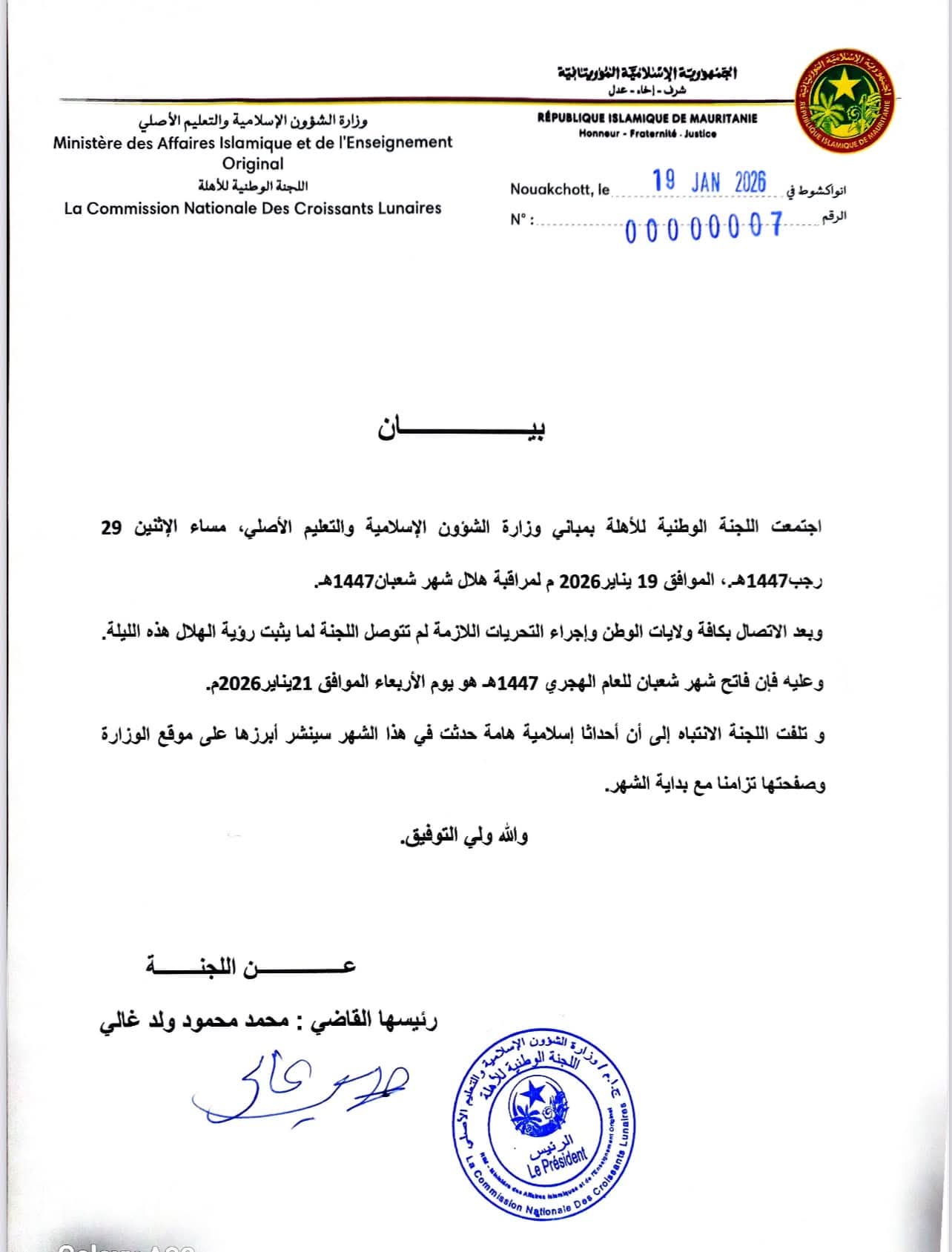 اللجنة الوطنية للأهلة تعلن فاتح شعبان بعد غد الأربعاء