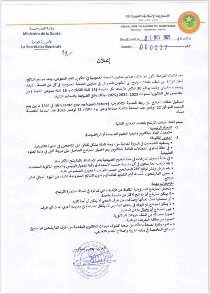 وزارة الصحة تعلن فتح باب المرحلة الثانية من انتقاء طلاب مدارس الصحة