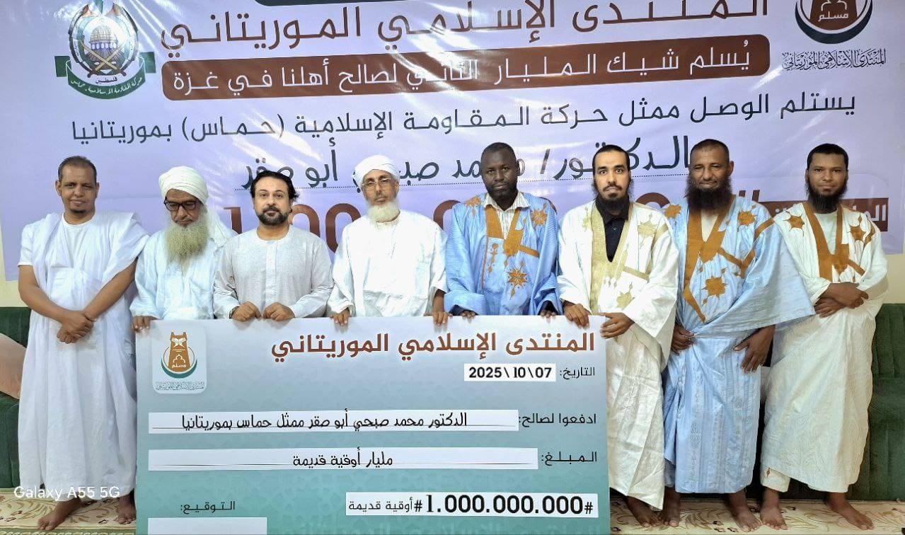المنتدى الإسلامي الموريتاني يخلّد السابع أكتوبر بتسليم مليار أوقية لممثل حماس
