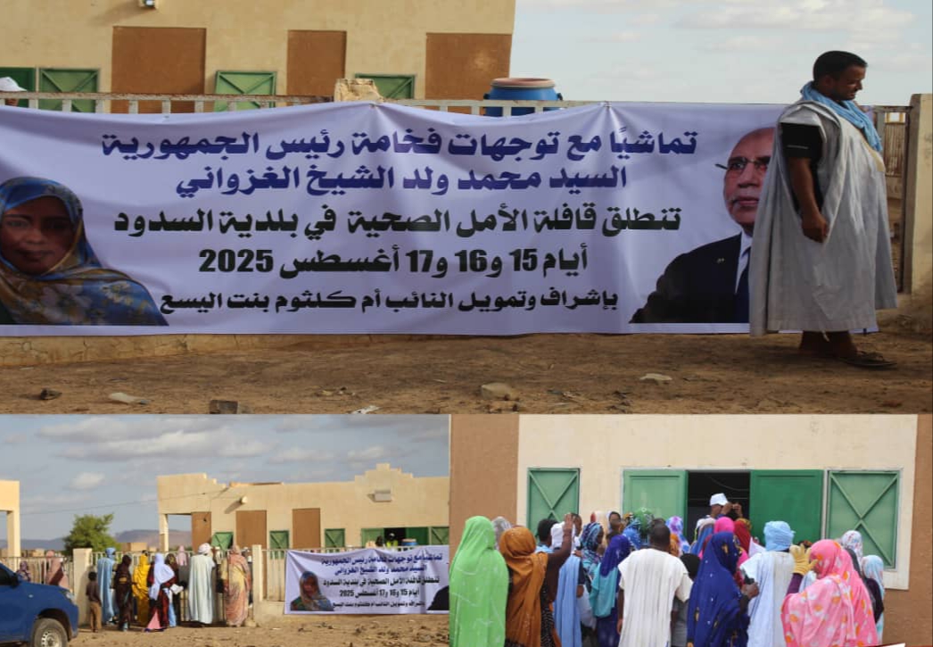 انسجاما مع توجيهات فخامة رئيس الجمهورية السيد محمد الشيخ الغزواني، الرامية إلى تعزيز العدالة الاجتماعية وتقريب الخدمات الأساسية من المواطنين، أطلقت النائب أم كلثوم منت اليسع خلال الفترة ما بين 15 و17 أغسطس 2025 "قافلة الأمل الصحية"، لصالح سكان بلدية السدود، مستهدفة القرى النائية والفئات الأكثر هشاشة، حيث الحاجة الملحة إلى الرعاية الصحية والدعم الإنساني.