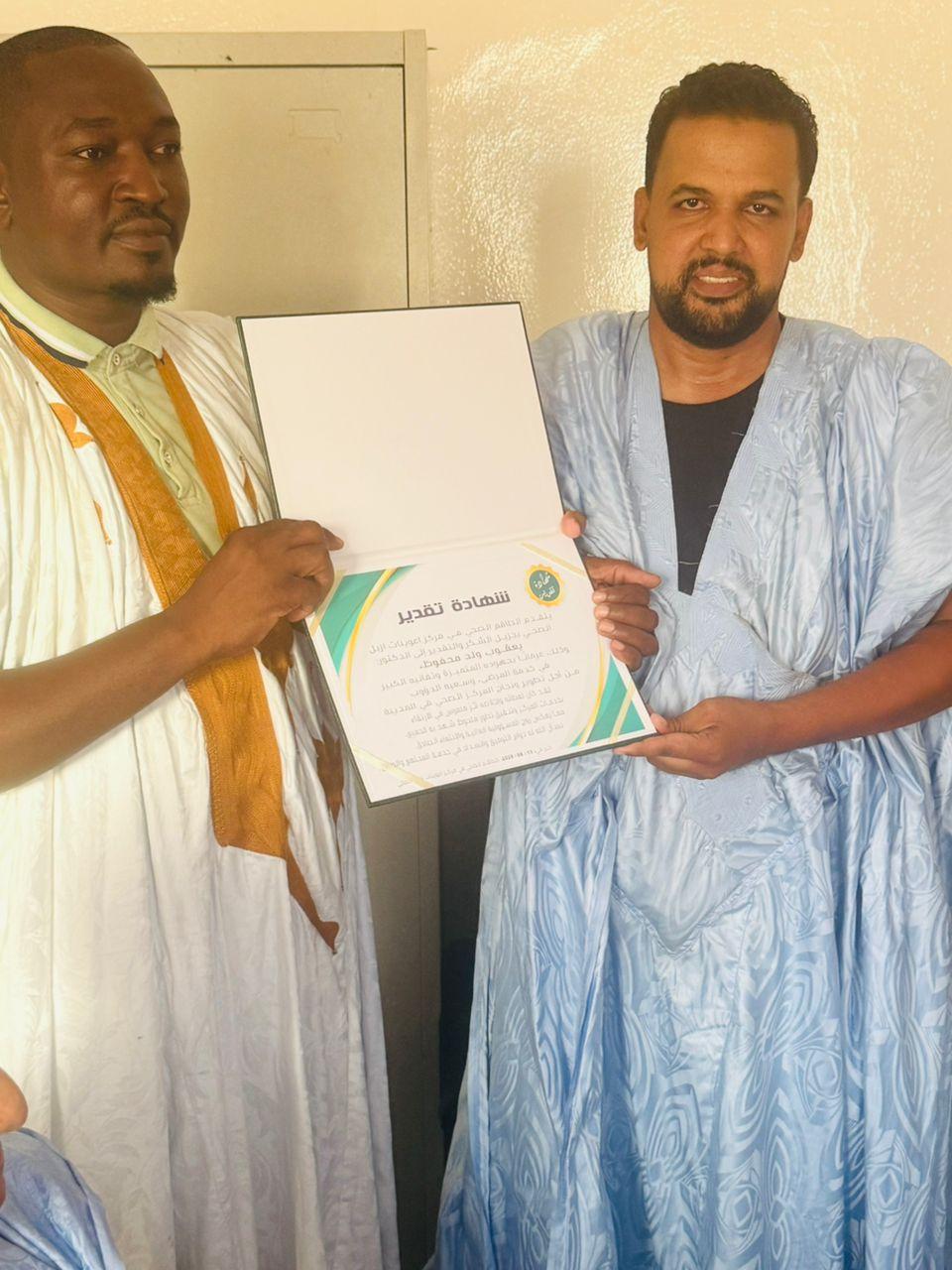 في أجواء يغمرها الامتنان، وتختلط فيها مشاعر الوفاء بالعرفان، نظّم طاقم المركز الصحي في اعوينات ازبل حفل وداع مؤثر للدكتور يعقوب ولد محفوظ، الذي خلّف بصمة إنسانية ومهنية راسخة في سجل المركز، من خلال تفانيه في خدمة المرضى وأهالي المنطقة.