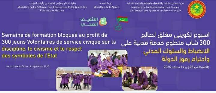 ويهدف هذا التكوين إلى تعزيز الانضباط السلوكي وترسيخ الروح الوطنية لدى المشاركين، إضافة إلى تهيئتهم بدنيًا وذهنيًا للمهام الموكلة إليهم في قطاع الصحة.