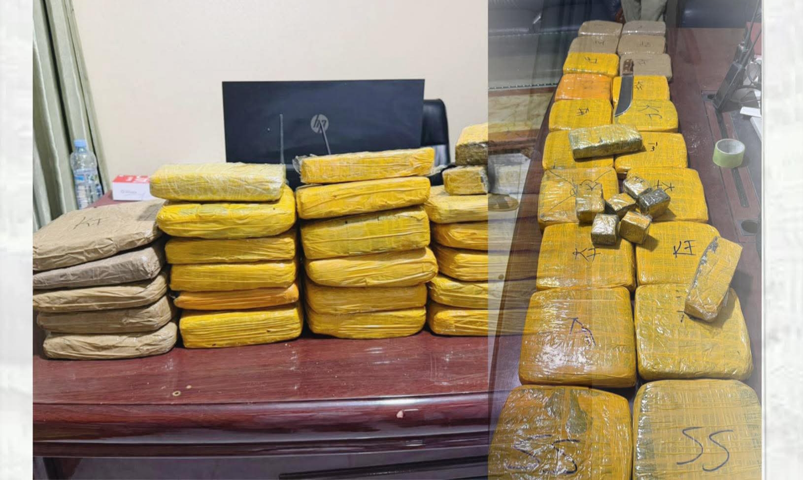 وذكرت أن العصابة اتخذت من ثلاثة منازل في مقاطعة عرفات وكرا لها لتخزين وتوزيع المخدرات، مضيفة أنه تم ضبط أكثر من 1503 غ من راتنج القنب و33 غ من خليط بيكربونات الصوديوم والكوكايين، وهي المادة الأولية لتصنيع مخدر "لكراك".