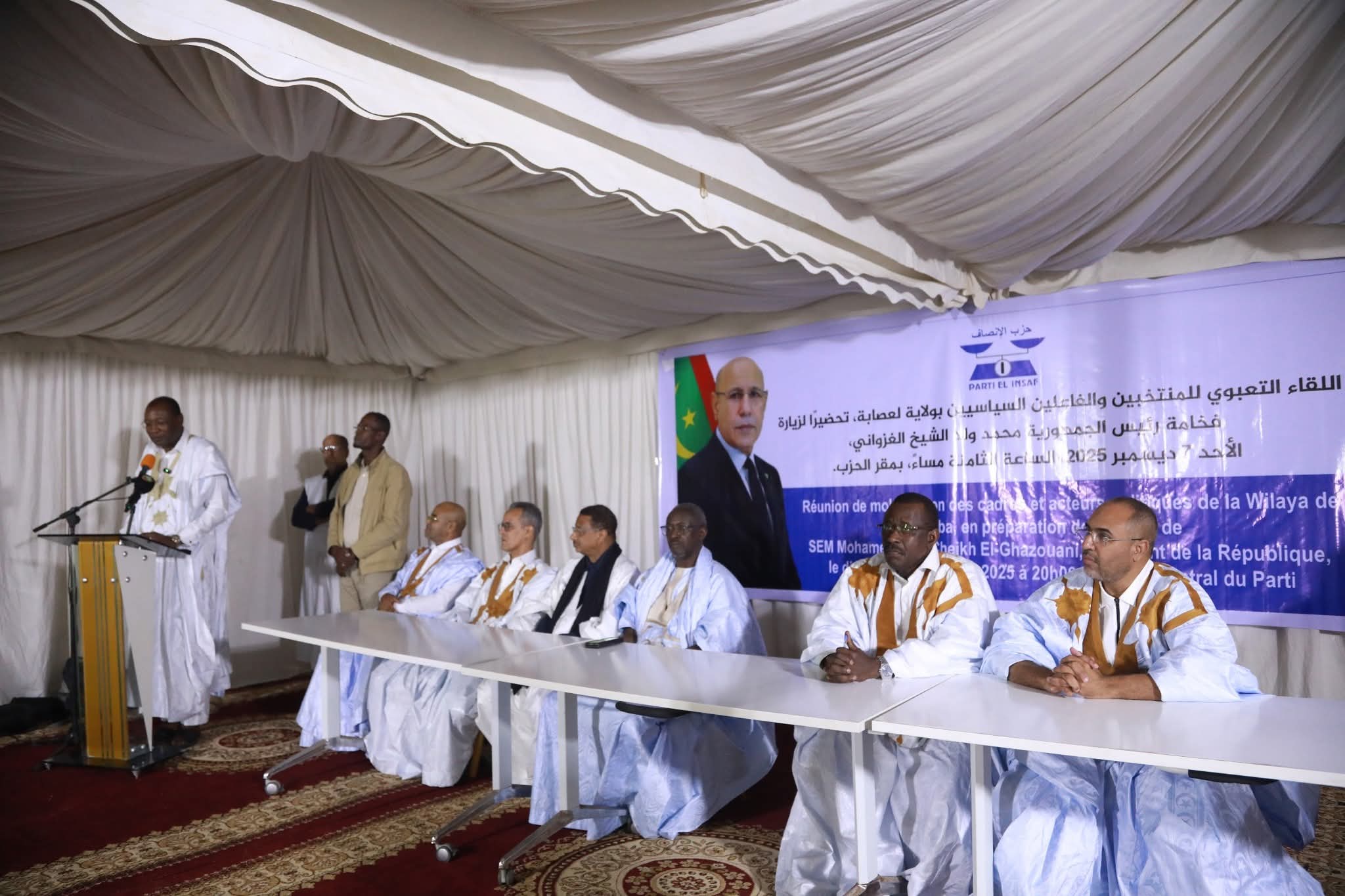 وترأس الاجتماع رئيس الحزب ووزير التنمية الحيوانية، السيد سيدي أحمد ولد محمد، الذي دعا المشاركين إلى تكثيف الجهود لضمان نجاح الزيارة، مؤكداً أنها تأتي في سياق تجسيد رؤية برنامج رئيس الجمهورية "طموحي للوطن".