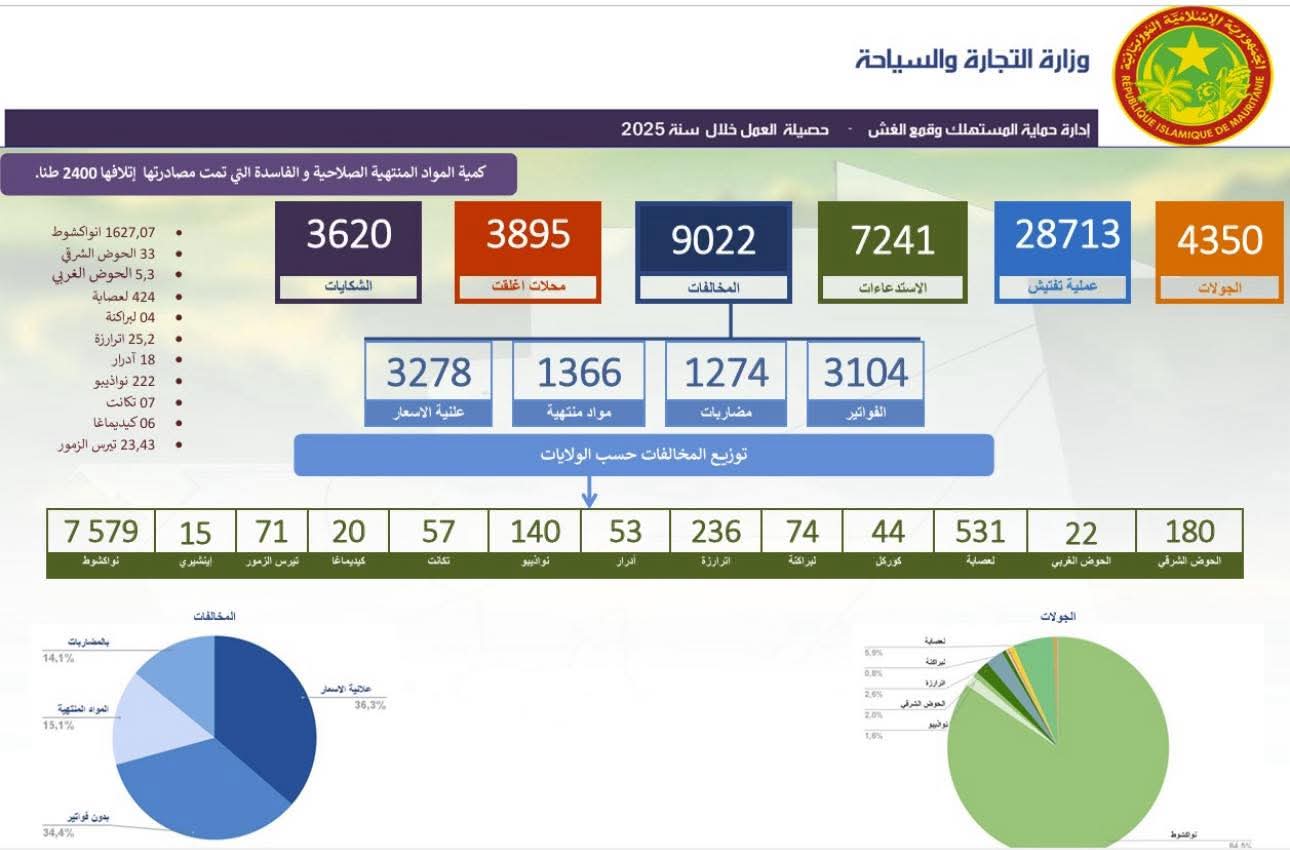 قدّمت وزارة التجارة والسياحة حصيلة عمل فرق حماية المستهلك خلال سنة 2025، وذلك في إطار مهامها الرقابية داخل الأسواق.