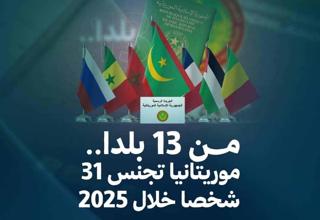منحت موريتانيا جنسيتها لـ31 شخصا خلال 2025، في رقم قياسي مقارنة مع الأعوام السابقة .