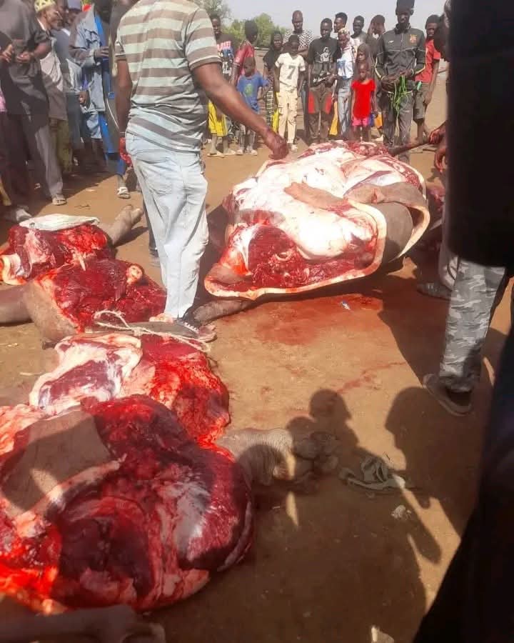 وأظهرت صور نشرتها صحيفة "Alkamba Times" يوم أمس بعض السكان وهم يقتسمون لحم فرس النهر. وبينما يرى بعض الأهالي أنه لا مانع من أكله، يعتقد آخرون أنه محرّم شرعًا وفق التعاليم الإسلامية